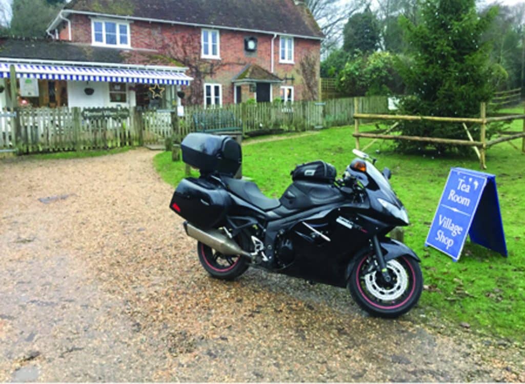 Some time ago, I had the pleasure of joining a Mark Spittles’ group run through the New Forest. It was one of those memorable rides and my introduction to exploring the ancient commons and medieval woodland with the wild ponies and cattle. The contribution made by the 12 airfields is marked by the Airfield Memorial at Holmsley, and at Ashley Walk there are the remains of the 5,000 acre bombing range where Barnes Wallace tested his famous Dambuster bouncing bomb, and the 22,000lb Grand Slam earthquake weapon for penetrating the German U boat pens. The Minstead Village Shop and Tea Room sits between Lyndhurst and the A31 across the village green from the Trusty Servant pub and small village car park. You are assured of a warm welcome as you enter this eclectic tearoom with its tasteful combination of lounge, café, and shop serving the local  community; it was the perfect place to stop for lunch and enjoy a pot of tea. In addition to a printed menu there was a ‘specials’ board of pies, soup, chilli bowl and apple pie plus cakes and lite bites. My locally produced Hunts Farm sausage on a bed of hot buttered sour dough would not have been out of place on Master Chef. The number of tables inside and out is limited so please ring ahead for groups greater than four. For more details go to Minstead Village Shop